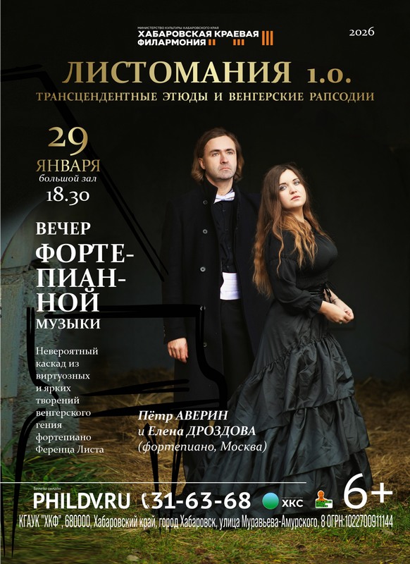 Невероятный каскад из виртуозных и ярких творений венгерского гения фортепиано - ФЕРЕНЦА ЛИСТА прозвучат 29 января в концертном зале Хабаровской филармонии.